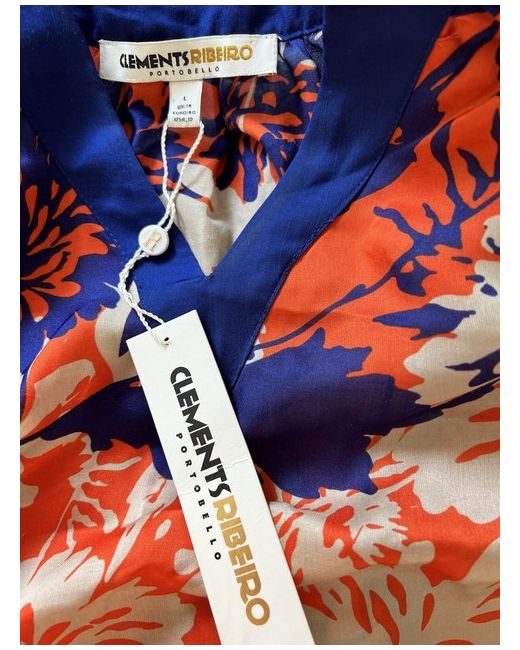 Women's Dark Blue Floaty Blouse With Navy And Orange Pattern L BNWT