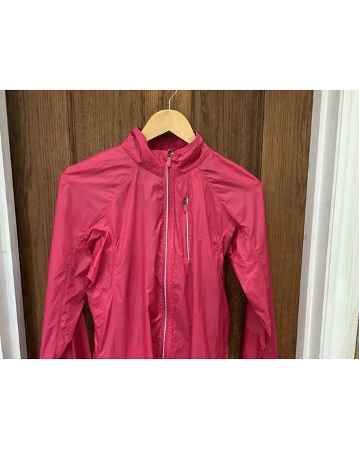 Cerise coloured rain-jacket/work-out outerwear Lots of handy pockets zipped and mesh as pictured to store belongings like keys/phone Fantastic quality Any questions please just ask😊