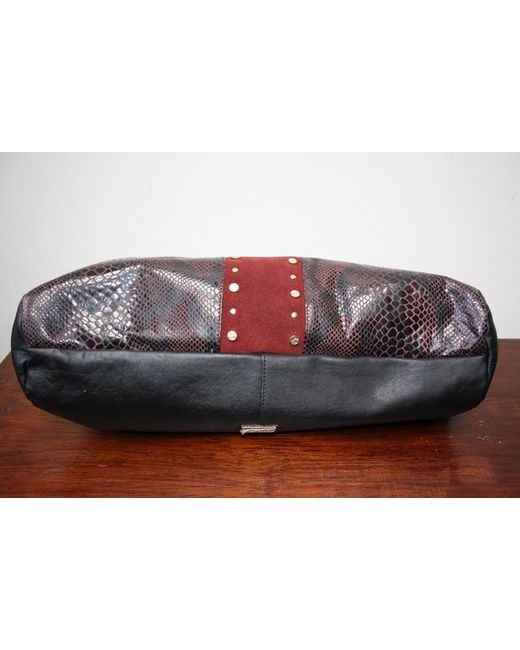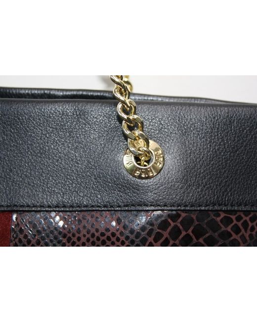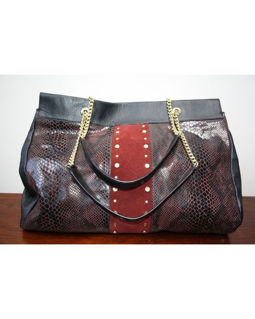 Superb handbag in leather, faux snakesking and suede with gold tone hardware. Lined with BIBA lining.
