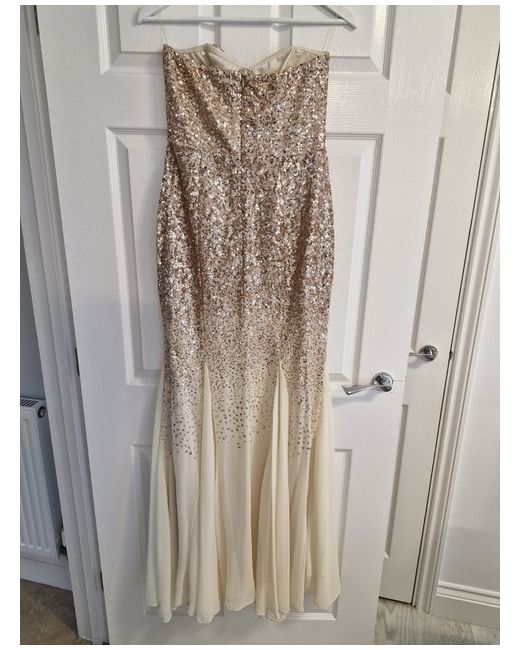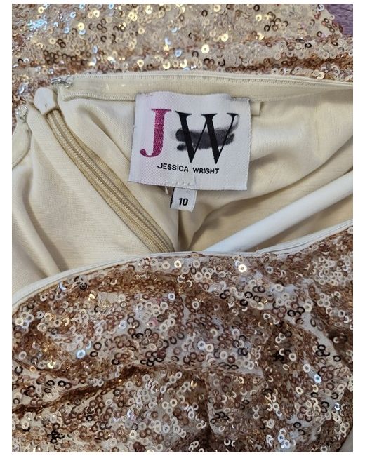This stunning party dress in size 10 is perfect for any occasion. Designed by Jessica Wright, it features a fit and flare style that is both elegant and comfortable. Made from high-quality polyester material, the dress is perfect for both winter and summer seasons. The dress comes in a beautiful beige colour that is sure to turn heads. It is a long dress that falls to the floor, making it perfect for any formal event. Whether you're going to a party or a cocktail event, this dress is sure to make you feel confident and stylish.
