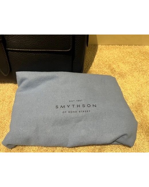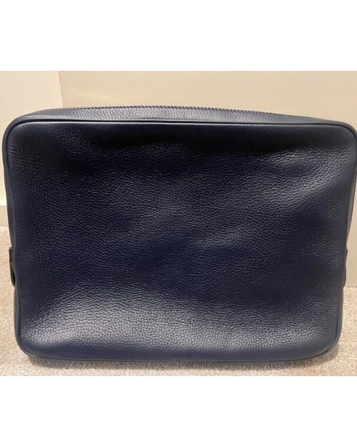 This is a Smythson laptop bag for unisex adults in a stylish blue leather exterior.