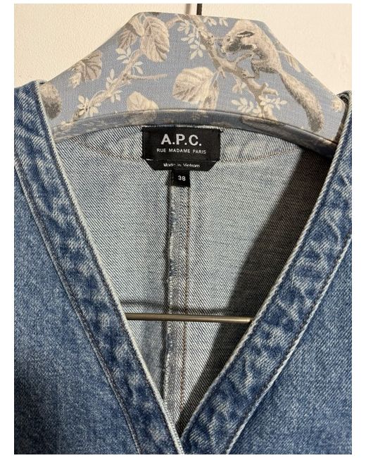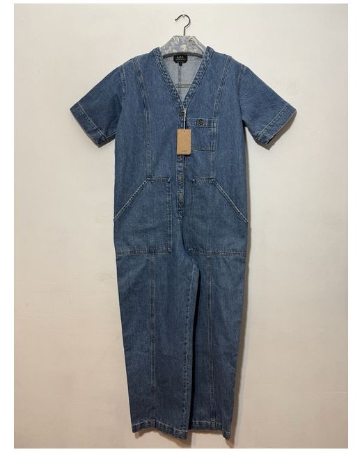 This A.P.C. overall is a must-have for any fashion-forward woman. Made from high-quality denim material, this one-piece outfit is perfect for those who love the rock, American, hippie, rodeo, safari, classic, cowgirl, modern, hipster, western, chic, love, London, or 90s themes. It comes in a regular size that fits perfectly on a size 38 woman. The coverall style of this outfit is perfect for those who want to make a statement. The blue colour of the denim material adds a touch of elegance to the outfit, making it perfect for both casual and formal occasions. This item is a new addition to any wardrobe and is perfect for women who want to stand out from the crowd.