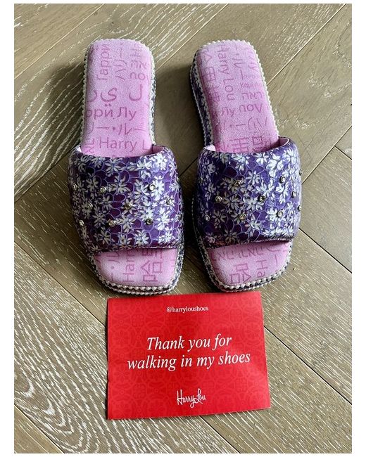 Purple padded sandals from Harry Lou. Iridescent purple. Size 37. Generous fit. Extremely comfortable thanks to the padded insole. Very stable to walk in. Never used. They belong to the classic continuative collection. Available online full price (£305). Selling them for £85 only.
