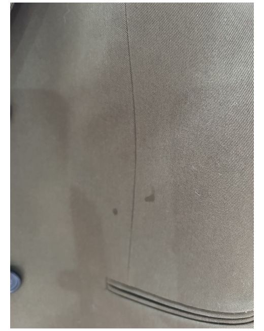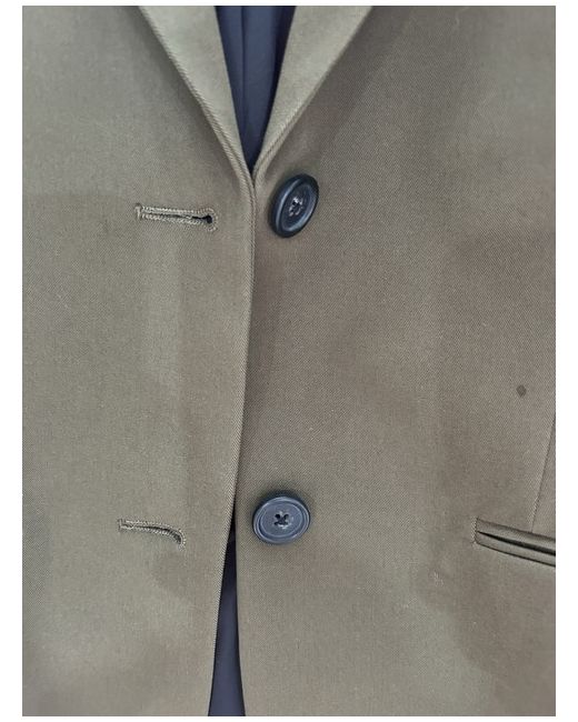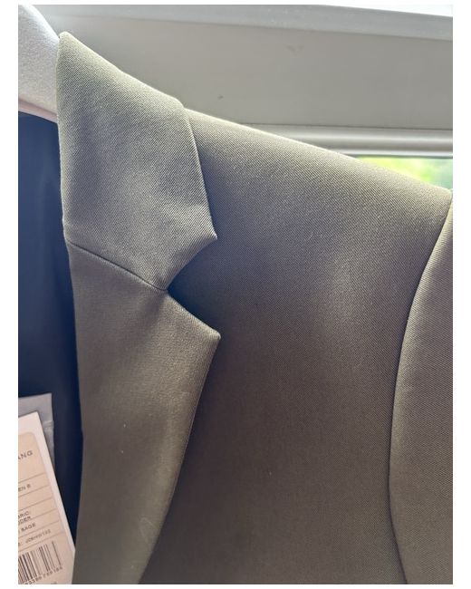 Fitted khaki green blazer, has a couple of stains that can easily be washed out. Please pics for the stains. Nothing majorly wrong with it. Super gorgeous with baggy or flared jeans or trousers.