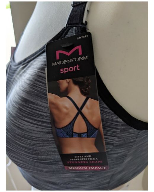 Colour is grey marl. MAIDENFORM sports bra. Size is 36D. Lightly padded.