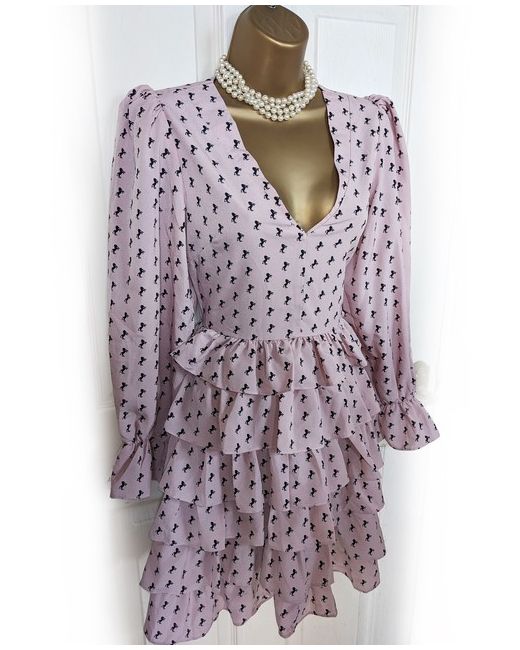 Women's Pink Dusky Black Horse Pattern Ruffle Mini Dress S 8 NWOT