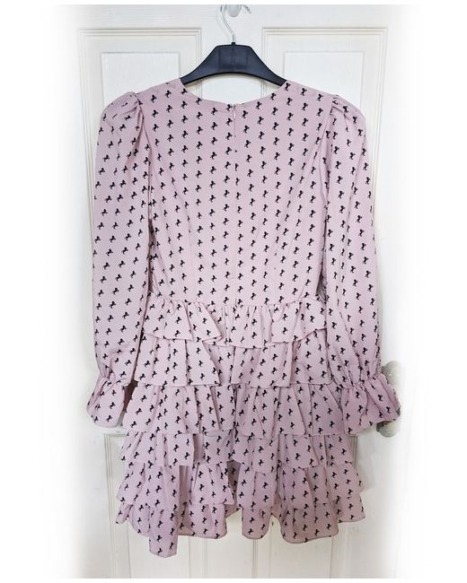 This beautiful Sister Jane mini dress features a stunning horse pattern in dusky pink and black, with plenty of ruffles in layered tiers. The dress has a flattering V-neckline, long balloon sleeves, and a zip closure for easy wear.