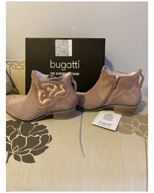Light pink ankle boots, cowboy style with stitching. Tasseled zip at the back, rubber sole