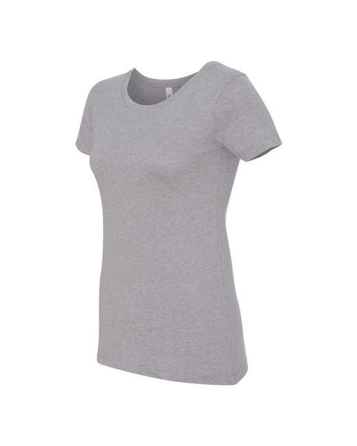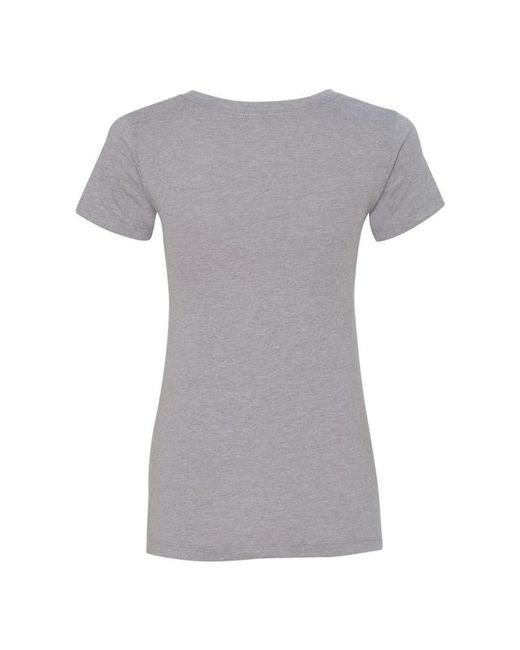 Next Level. /yd, 60/40 combed ringspun cotton/polyester, 30 singles. Fabric laundered. Set-in collar 1x1 baby rib with front coverstitching. Self 3/8" shoulder-to-shoulder binding. Side seams. Tear away label.