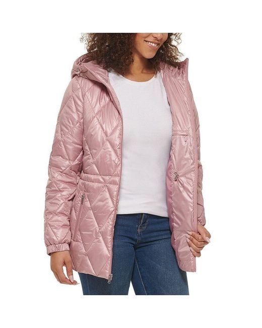 Get dressed and go in any weather. This quilted lightweight puffer jacket is great for keeping out cold and wind in style. Stylish from front to back, this quilted jacket also features an inner drawcord at waist to define shape.