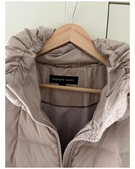 60% Duck Down And 40% Duck Feather. Extremly Warm. Great For Autumn And Winter Montghs. Andrew Marc. Pale Champagne Colour. Beautiful Warm Jacket. Can Keep You Warm Up To Minus 16 Degrees. Beautiful Coat.Currently Sold In Costco.