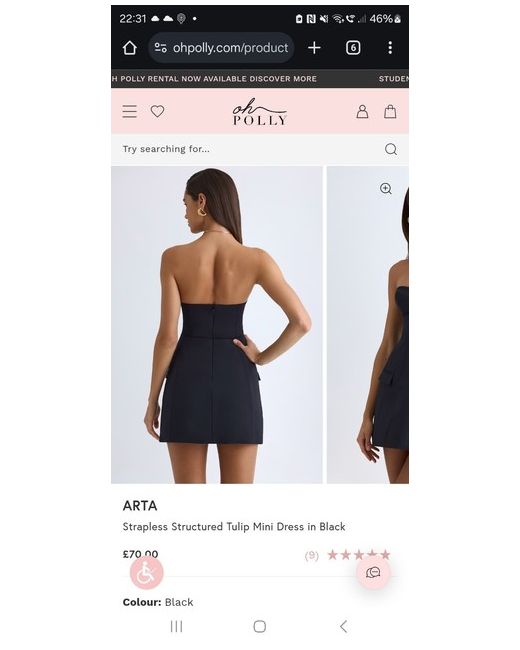 Women's Black Oh Polly Arta Strapless Structured Mini Dress 8