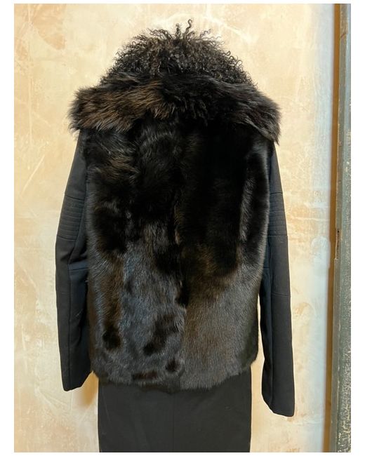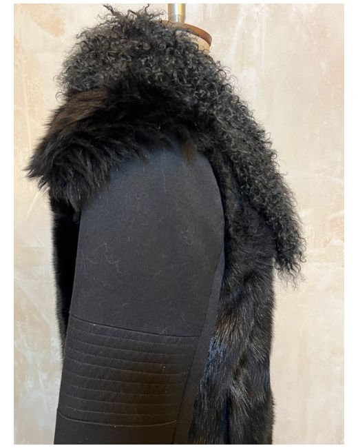 Elevate your winter wardrobe with this stunning black overcoat from Zoe Jordan. Crafted with a combination of wool and sheepskin, this mid-length coat is both stylish and warm. The full zip and sheepskin body provide added protection against the elements, while the mongolian sheepskin collar add a touch of luxury. The classic black colour and elegant style make it a versatile addition to any winter wardrobe. Don't miss out on the opportunity to own this beautiful coat from Zoe Jordan. Limited edition. Size UK 8