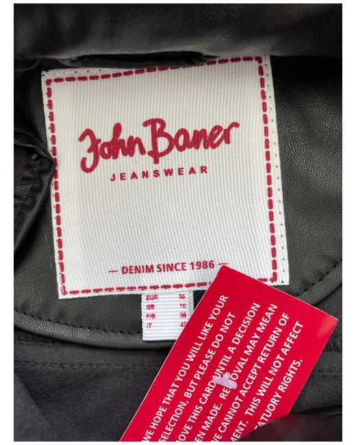 John Baner. The material is much lighter than usual faux leather. Black Jacket.