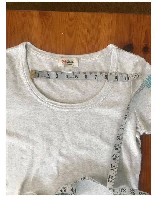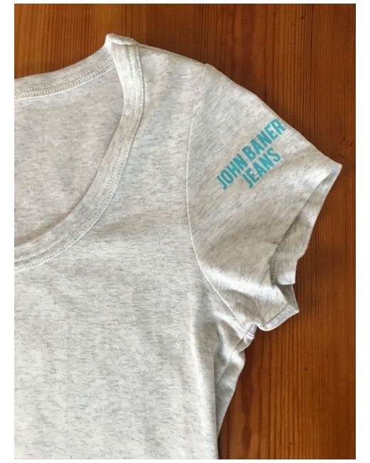 John Baner Ladies size 10/12 light grey fleck cotton/elastane round neck T/shirt. Stretch,Slim fit,slightly A-line.