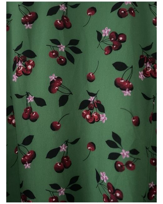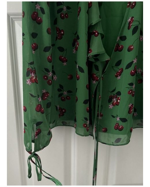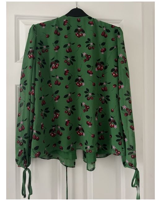 Gorgeous green wrap top by Kitri Studio London. An independent fashion brand founded in London in 2017 focussed on providing fresh fashion in strictly limited quantities. This top is a vibrant green with a pink cherry blossom and red cherry pattern. Sleeves have ties at the cuffs ( see photos) and ruffle detail on wrap. Lined, lightweight and in very good condition. Size 12 NWOT Note: some creasing due to being in hanging storage bag. Contrasting cherry trousers by Kitri available to interested buyers.