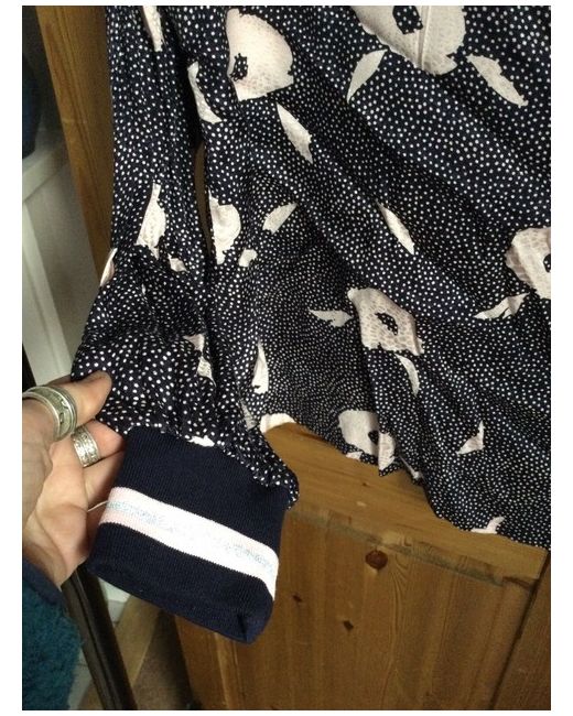 BNWT Kitri navy & nude bold dotty patterned cuff blouse top size uk 16 designer with striped cuffs