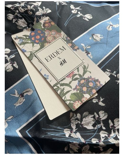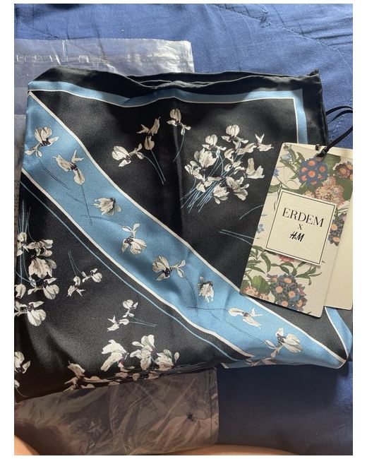 This beautiful Erdem x H&M silk scarf (AW17 Collaboration) features a floral pattern in blue/ grey Made from luxurious silk fabric, it exudes elegance and style and will and a touch of sophistication to any outfit. Square shaped 46cm x 46cm