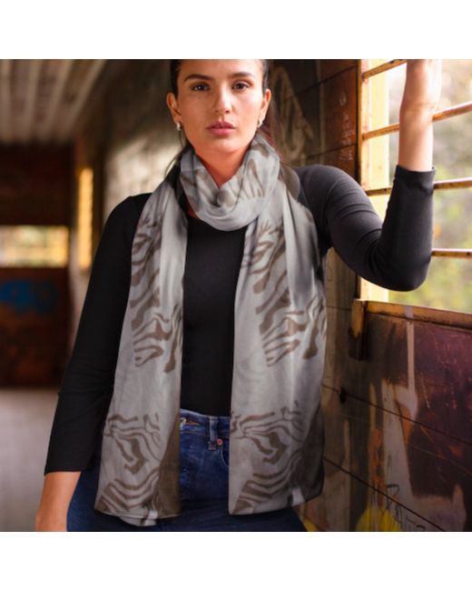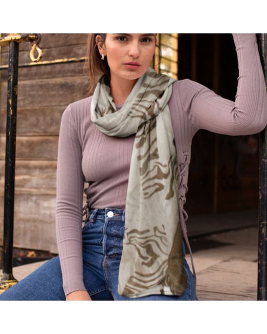 The scarf features a beautiful zigzag pattern in brown and grey, which adds an elegant touch to any outfit. The scarf is versatile and can be worn in different styles, making it purrfect for any occasion.