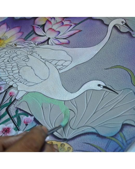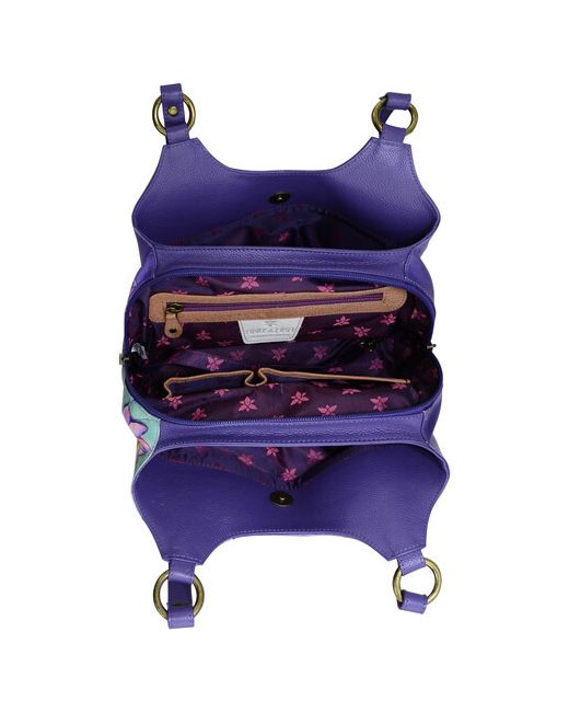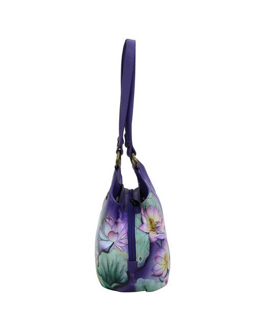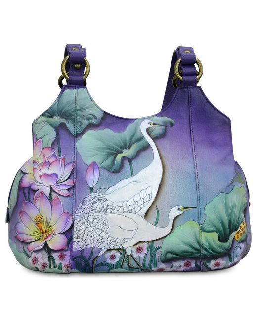 Anuschka Genuine Leather Hand Painted "Peacefull Garden " 469-PCG. Satchel Shoulder. This Handbag Sizes. Colour is Purple with Hand Painted. Length is 29cm.