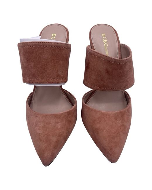 BCB Generation Ladies Houston Kid Suede Mule Heels- UK Size 4 New-Defect small damage to box, shoes in perfect condition Elevate your shoe game with these stylish BcbGeneration Houston Kid Suede Mule Heels. The pointed toe and block heel style provide both comfort and style, making them perfect for any occasion, from casual to formal. The slip-on closure and faux suede upper material add to the overall chic look of the shoe. These heels are perfect for the autumn, summer, and spring seasons and come in a beautiful brown colour. They are available in UK Shoe Size 4 and EU Shoe Size 37. The BcbGeneration brand is known for its quality and attention to detail, making these heels a must-have for any fashion-forward woman.