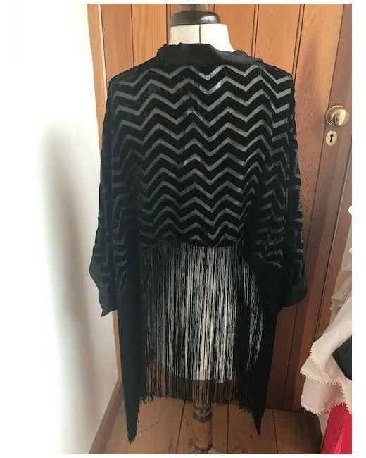 Women's Black bcbg generation zig zag devore velvet fringed shrug one bnwt