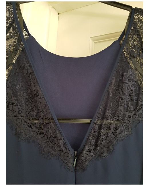 Elise Ryan maxi dress size 12, in Navy blue, with a scoop neck, the dress zips up into a shape of a V neck at the back. The sleeves are Lacey material .this dress is ideal for that special occasion E4