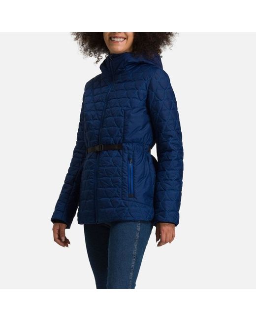 Synthetic insulation pairs with a classic cut for versatile warmth when the temperature drops. Elegant quilting is inspired by our shield logo, while an elastic belt with a snap buckle and chic side slits add city-ready style