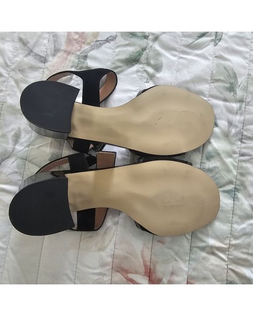 These Pollini sandals are a stylish choice for women in UK size 3.5. Made in Italy with black leather, they feature a low heel and a strappy open toe design, perfect for the summer season. The buckle closure and standard shoe width provide comfort and convenience, while the leather lining and insole add a touch of luxury to these chic sandals. Ideal for everyday wear or special occasions, these sandals are a versatile addition to any woman's wardrobe. Black patent leather and suede.