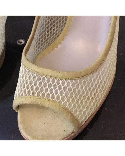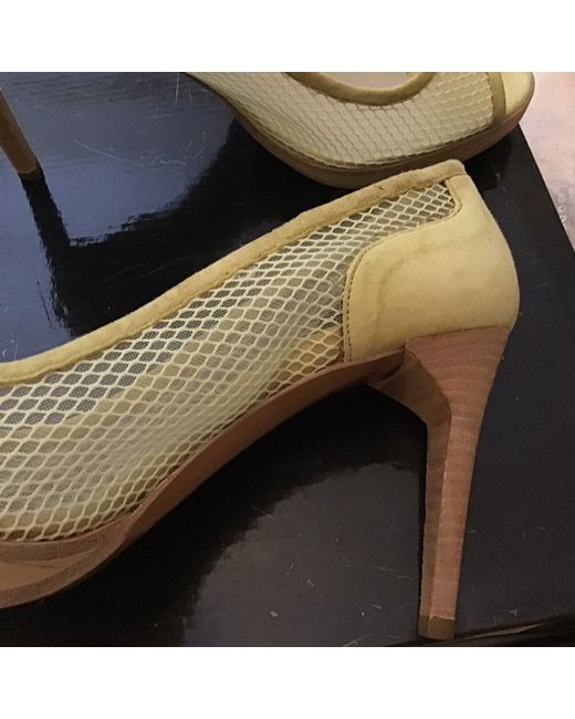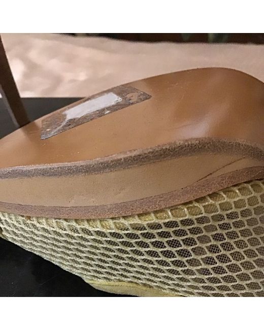 Lime green peep toe , mesh effect with peep toe. Trim in suede. Sole leather . Designer style shoe. Made in Italy.Only tried on. Thank you for viewing .