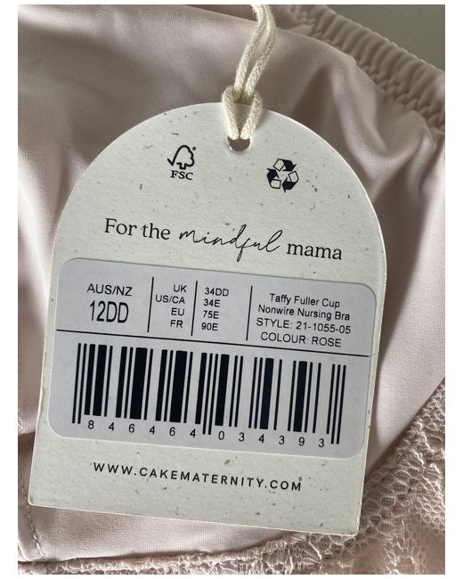 Size 32H. - Oeko-Tex Standard 100 materials and accessories. All Cake nursing bras & maternity clothes have been verified as non-irritating to the skin and free from harmful substances. - 6 spaced out hook & eye options designed to fit and support your ever-changing body with gold hardware and accessories.