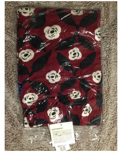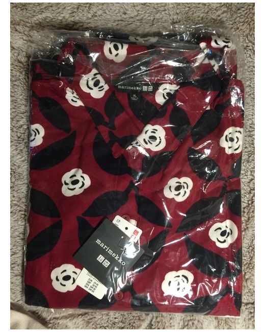 Marimekko x Uniqlo red white and black floral pattern pyjamas / lounge set, top and bottom, soft cosy brushed cotton fabric. NWT, size XL.