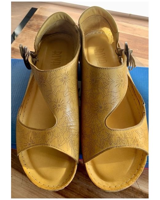 Brand new in box Riva - Arlo size 5 (38) RRP £58.00 Rivas bestselling low-wedge holiday sandal. Arlo has improved design, shape, comfort and colours. Ideal for everyday casual comfort Supple, real leather upper with embossed and perforated floral design. Large button detail on side. Easy slip on with elasticated stretch side fitting. Medium/wide fitting. Comfortable closed back and open toe style. Soft leather heel back. Super comfortable flat sandals. Collection (DN22) or postage.