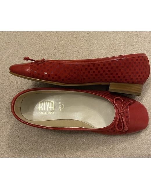 Riva ballerina shoes. Gorgeous red in a chequered pattern, patent leather and suede, with plain toe and small bow. Absolutely brand new due to wrong size being purchased. Size 38.5. (5.5) original price was £69.95 and still in original box.