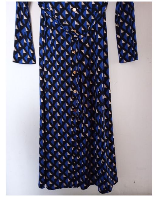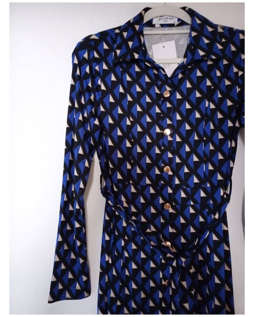 This UK size 10-12 midi dress by Swan features a collared neckline, long sleeves, and a multicoloured print.