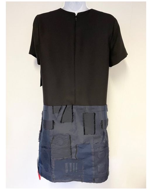 Rear Zip Fasten. Navy Blue To Skirt With Patchwork Fringed Edge Trims. Round Neckline With V To Centre Front. Size 34 Fit Uk 8/10. Dry Clean Only.
