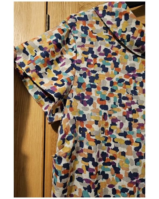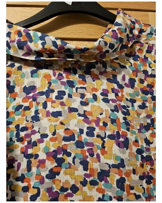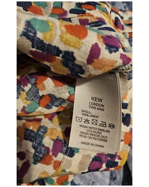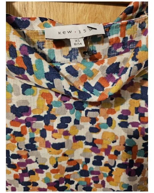 Add a touch of colour to your wardrobe with this beautiful Kew 159 linen blouse. The polka dot pattern and roll neck design make it perfect for any occasion, whether it's for travel, a party, cocktail, casual workwear, or business. The cap sleeves and pullover closure add to its stylish appeal. Crafted from lightweight and breathable linen material, this blouse is perfect for all seasons, including winter, autumn, summer, and spring. The multicoloured top is machine washable and comes in a size XS. It's a great addition to any women's clothing collection.