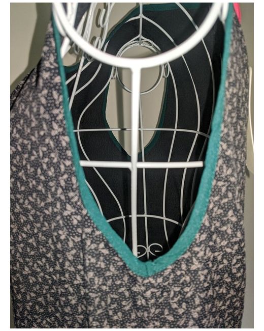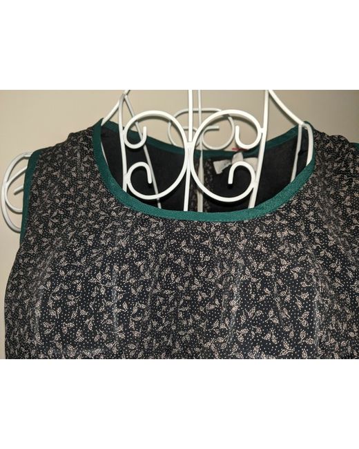 Lovely Crisp Black Floral Top By Kew. Green Edging To The Neckline And Sleeve Edge.