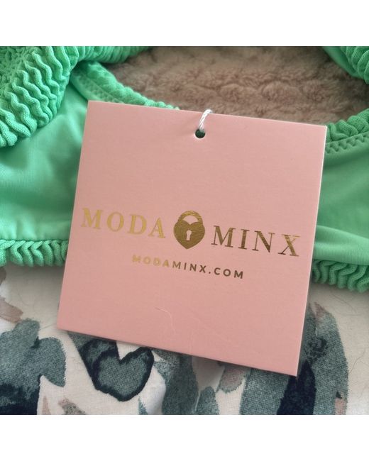 This Moda Minx bikini features a bright green knot top in size small, perfect for women looking to make a stylish statement at the beach or pool. The bikini top is of the classic style, with a flattering design that accentuates the figure. With its new with tags condition, this bikini offers a fresh and vibrant option for those seeking a striking swimwear look. Originally £30 Smoke free home