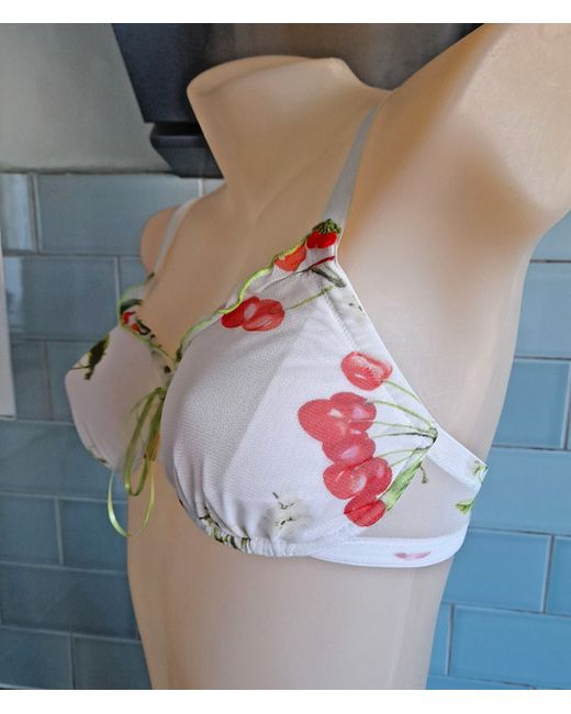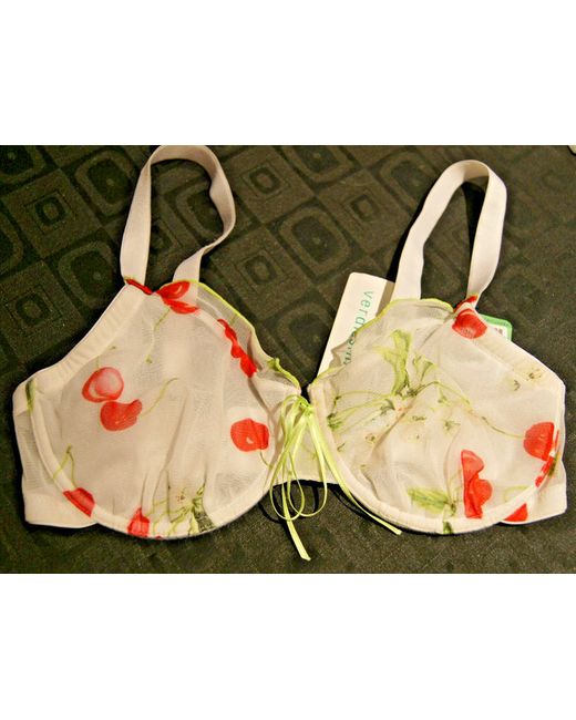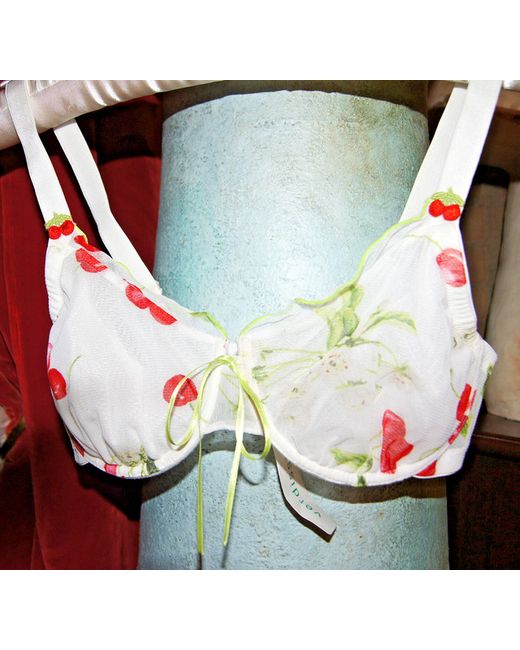 Women's Red White Tulle Cherry Patterned U/W Full Coverage French Bra D Cup