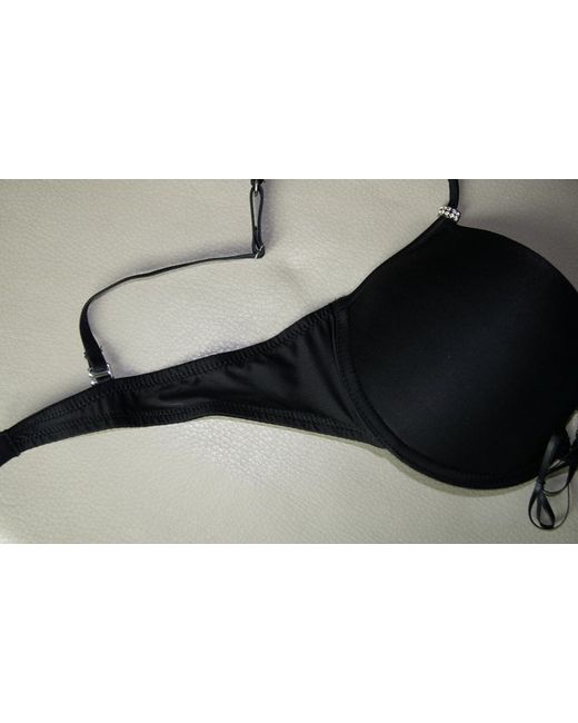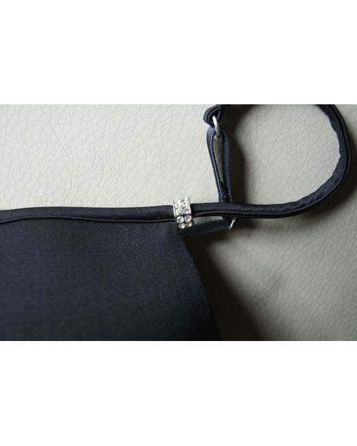From Versidissima, Style 31N TS39 a very elegant black microfibre G - string with a plain front panel which continues over the gusset. The leg sides and waist band are edged with a band of black elasticated smooth fabric, secured with black zig zag stitching.