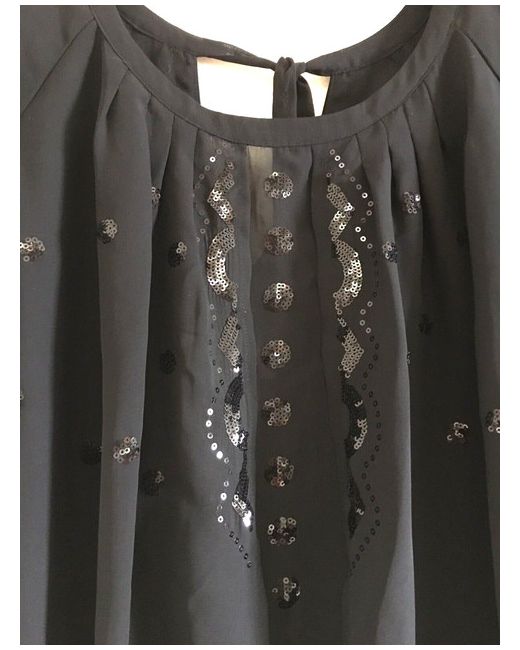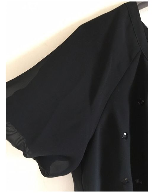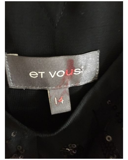 ET VOUS Black Embellished Chiffon Floaty Short Sleeved Blouse. Embellished with sequins. Double layered chiffon fabric. Size UK 14. 100% polyester. Machine washable. LENGTH from shoulder to hem 60 cm.