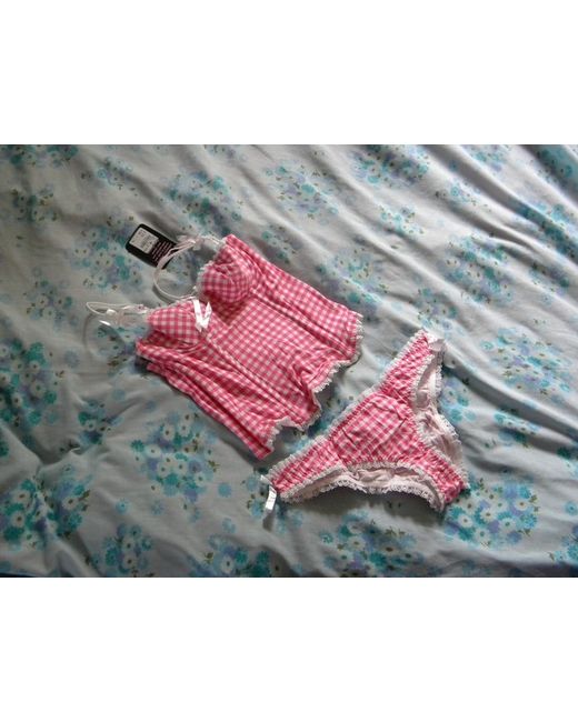 Women's Pink Gingham 32A Basque Bustier ONLY no briefs Cotton
