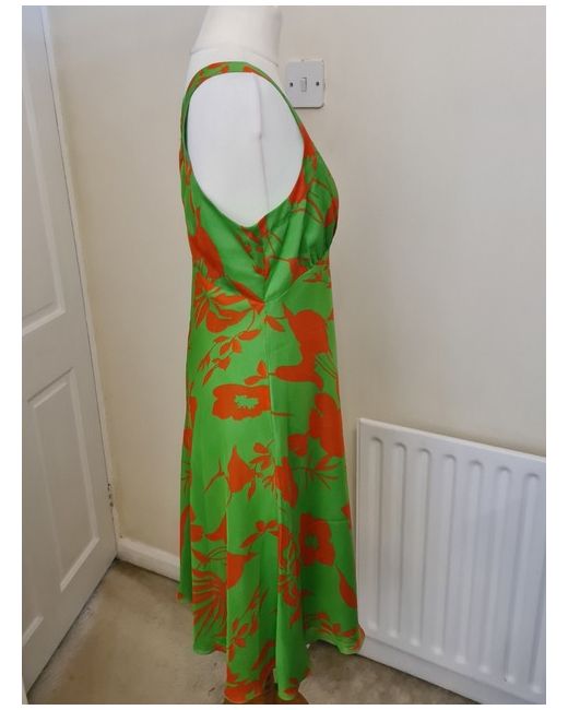 This Gianfranco FERRE designer summer dress in size 10 features a stylish A-line silhouette with a knee-length hemline, perfect for a variety of occasions including parties, weddings, and casual outings. The sleeveless design and viscose material make it ideal for the warmer summer season, while the vibrant green colour adds a pop of colour to your wardrobe. The dress is lined for added comfort and quality, embodying the designer theme with its sophisticated and timeless style.