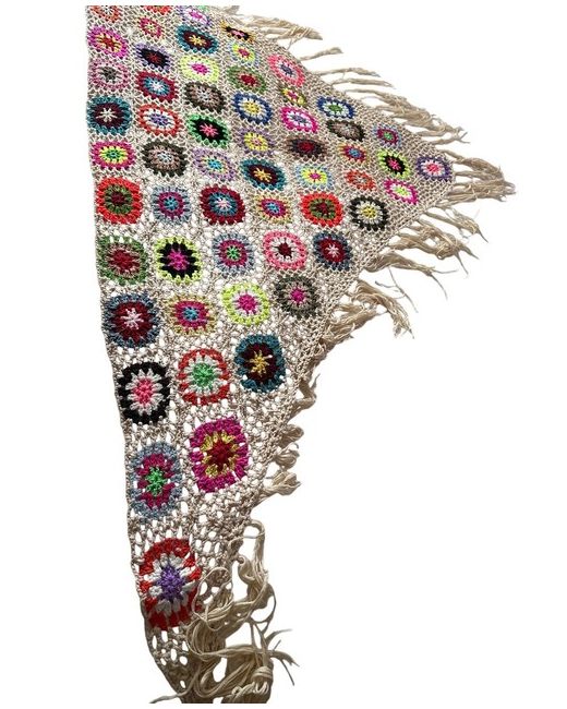 This beautiful handmade scarf is the perfect accessory for any woman. The colourful pattern of flowers in squares is eye-catching and adds a touch of festive cheer to any outfit. Made from a blend of polyester and cotton, the scarf is soft and comfortable to wear. Measuring 78cm in length and 178cm in width, it's the perfect size to wear as a triangle scarf. The scarf is machine washable, making it easy to care for. This scarf is a great Christmas gift or can be worn throughout the autumn, winter and spring seasons.
