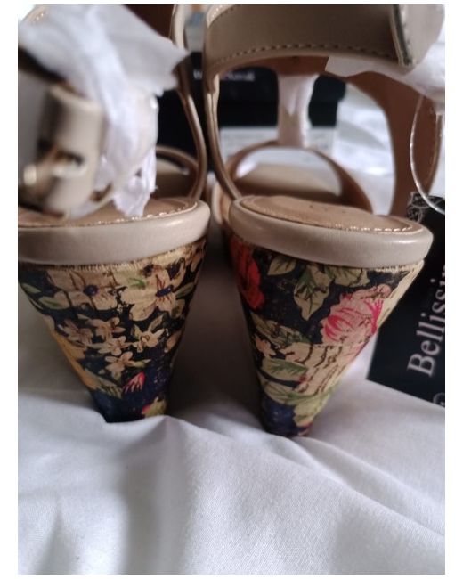 Beautiful floral wedge sandals from Bellissimo Multi coloured wedge Beige / cream coloured straps Size 4 (37) Brand new with original box