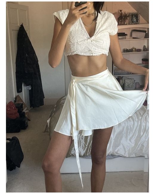 This stunning ivory skirt from orseund iris is perfect for any special occasion. The high-rise, wrap style is flattering and comfortable, and the short length makes it perfect for summer or spring. Made from high-quality polyester satin, this skirt is both durable and stylish, with a beautiful no pattern design that will complement any top or blouse. Extremely hard to find now! Size M - seen on UK size 8