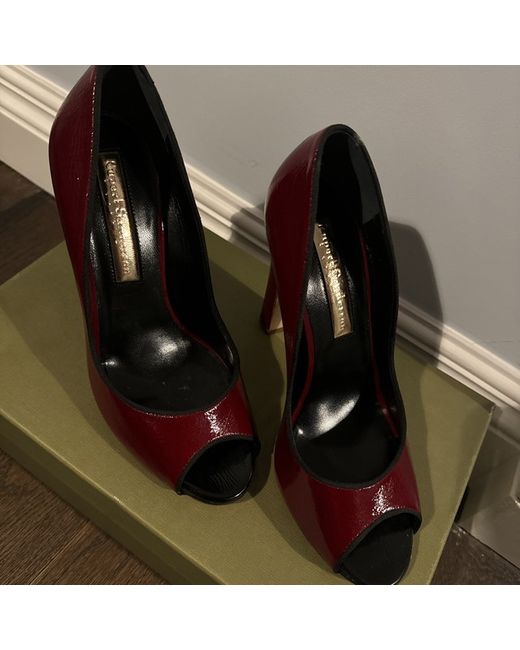 Experience the epitome of elegance with Rupert Sanderson's court heels, a perfect blend of classic style and contemporary design. Crafted from a luxurious mix of patent leather and supple leather, these shoes promise both durability and comfort. The vibrant red hue adds a bold statement to any outfit, ensuring you stand out with a touch of sophistication. Available in UK size 4, these heels are tailored for the discerning woman who appreciates a harmony of fashion and function. Their sleek silhouette complements any ensemble, making them a versatile choice for both daytime sophistication and evening glamour. Slight visible defects on soles but never worn, please see pictures. No refunds or exchanges accepted