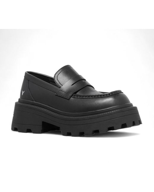 These black loafers are designed with a chunky platform and cleated sole, seamlessly blending fashion with functionality. fted from high-quality black leather, these loafers provide a sleek and sophisticated look.