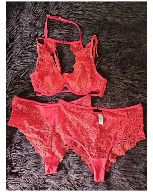 Designer Balconette Bra 36A thongM soft lace and sequins